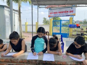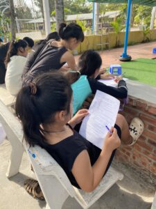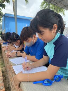 Nhìn xem… các “kình ngư” của Swim Vietnam đang chăm chú làm bài kiểm tra cuối khóa của Chương trình học bơi sinh tồn miễn phí. Theo đó, bài kiểm tra đánh giá được chia thành hai phần, một là lý thuyết với các kiến thức an toàn dưới nước; hai là thực hành theo từng cấp độ phù hợp với năng lực của các em.