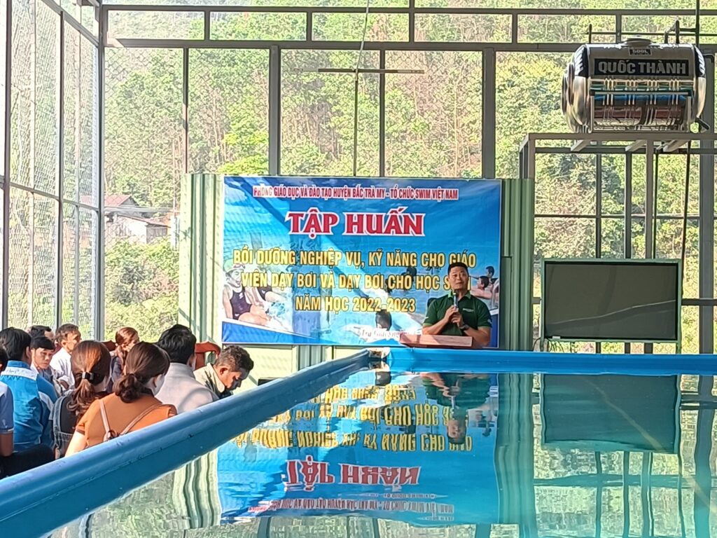 Trong hai ngày 21-22.03, khoảng 30 giáo viên/ cán bộ đã tham gia lớp tập huấn giáo viên dạy bơi để chuẩn bị cho chương trình dạy bơi sinh tồn miễn phí cho học sinh huyện Bắc Trà My (BTM), Quảng Nam năm học 2022-2023. Theo đó chương trình tập huấn được tổ chức bởi Phòng GD&ĐT H. Bắc Trà My và sự hỗ trợ về chuyên môn của Tổ chức Swim Vietnam với mục đích nâng cao nghiệp vụ, kỹ năng cho giáo viên dạy bơi tại các trường tiểu học, trung học cơ sở, TH-THCS trên địa bàn Huyện.